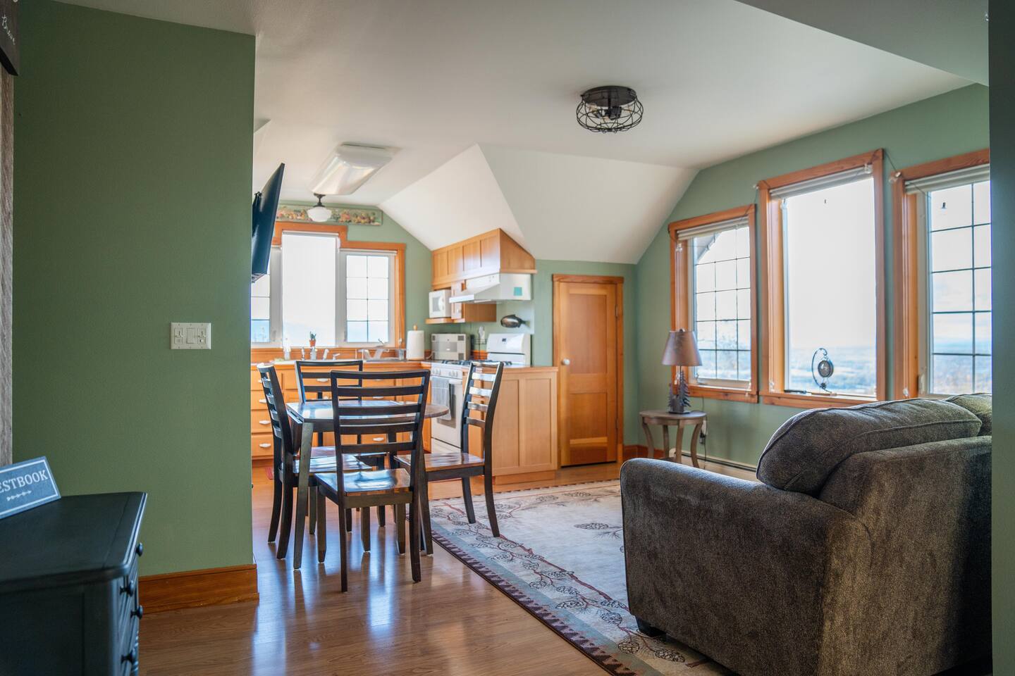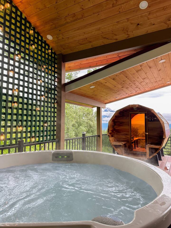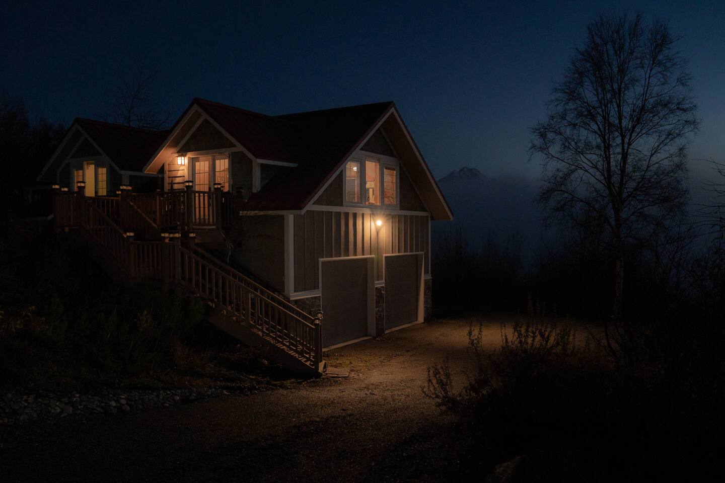 One-of-a-kind property in a one-of-a-kind place. This cozy, detached guesthouse that overlooks the Mat-Su Valley from iconic Lazy Mountain. Includes a huge new covered deck where you can enjoy the unobstructed views from the barrel sauna and hot-tub while protected from the elements. 2 bedrooms, 1 bathroom, steam shower, full kitchen, open living room. Pull-out queen couch can sleep additional two guests. *Winter months, AWD is a must. Garage is not for guest use.